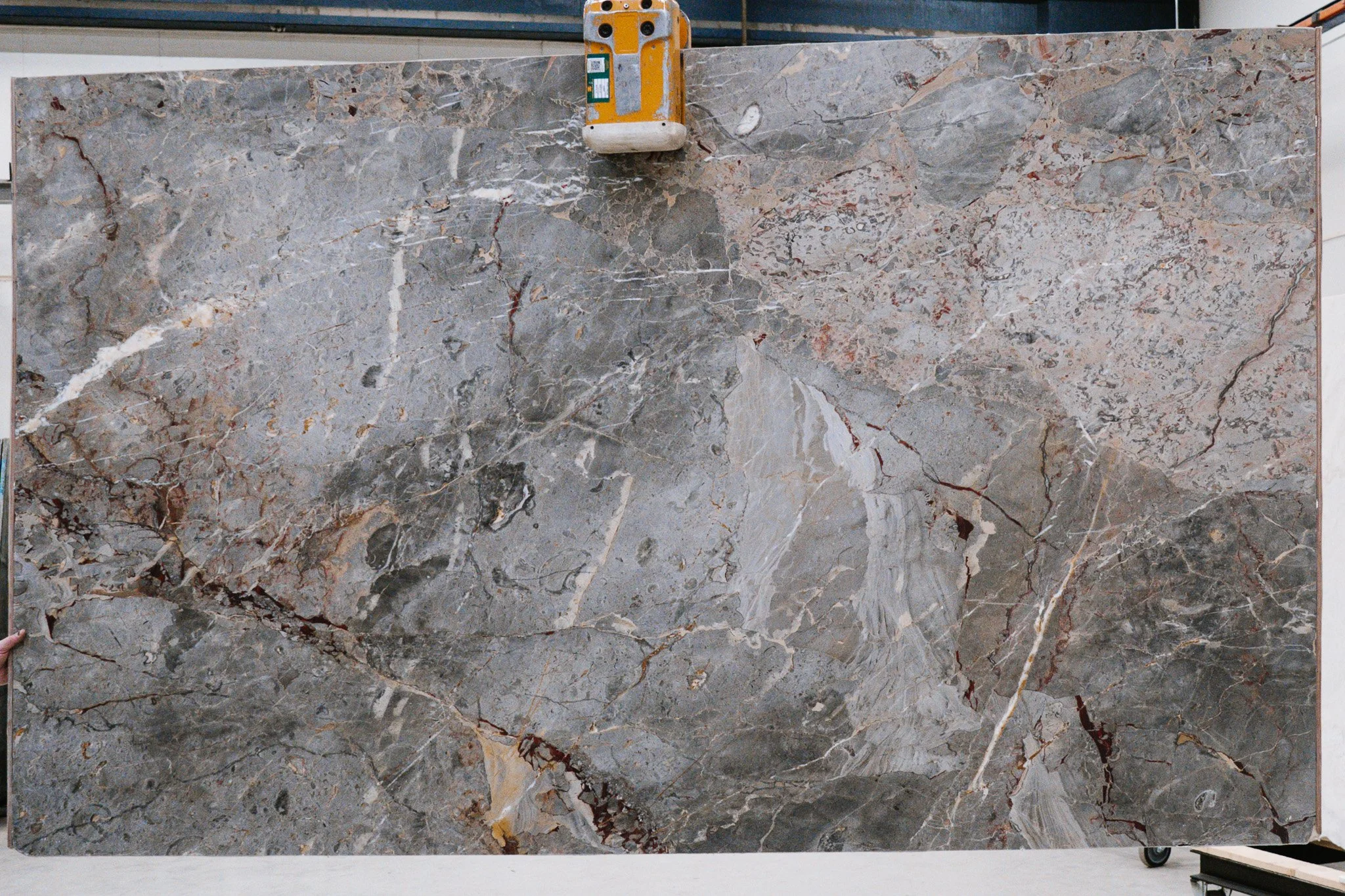 Dets fængslende mønster, krydset af årer og sprækker gør denne marmor til en helt unik sten.